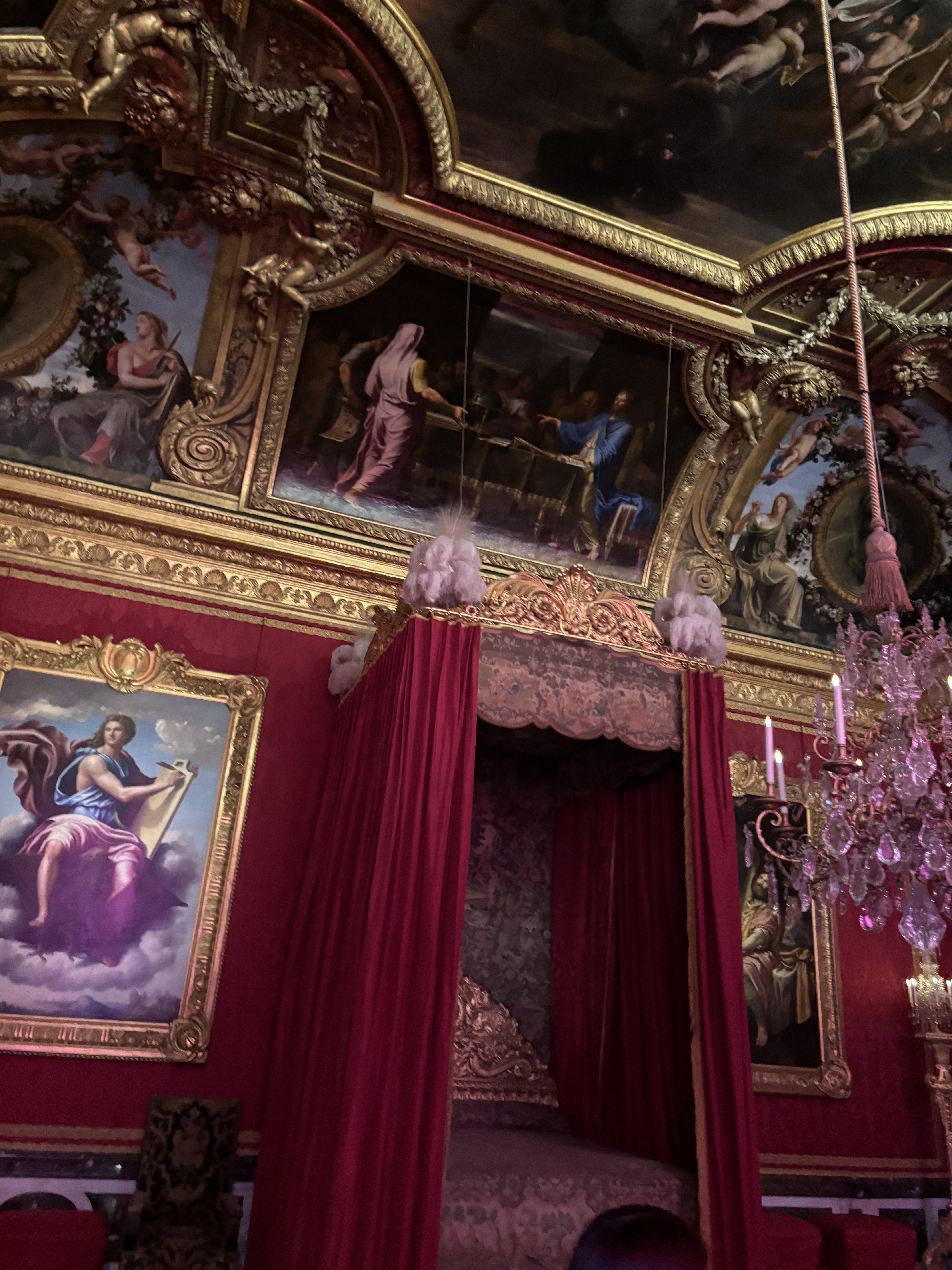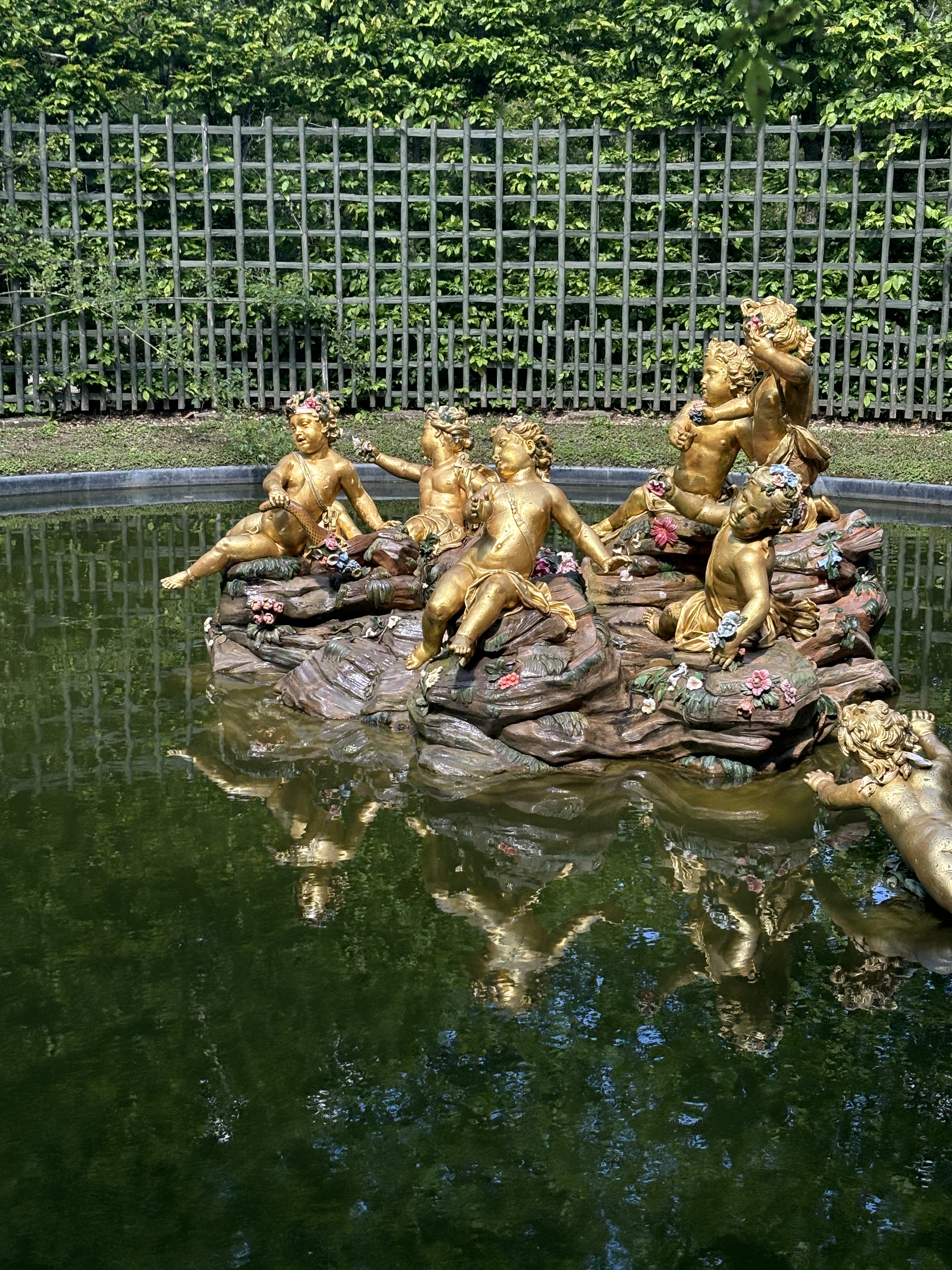 The people closed in on all sides of me and I was swept off my feet into another one of the numerous rooms present in the Château de Versailles. This grand palace had its humble roots as a Hunting lodge for Louis XIII (13).Construction on the Palace continued until Louis XIV’s time where it had become the largest palace in Europe. Louis XIV shifted his court to this palace. Eventually Louis the 16th reigned over it , but during 1789 the royal family had to leave. The room was the place where Louis XIV had his nighttime and morning ceremonies. This was probably the most crowded room that I had ever been in. After about 10 minutes, I was able to leave the room as the tide of people excited.Visiting the palace of Versailles was a perspective changing moment for me. In the palace, we first looked at the outside of the building. The building and different apartments, rooms, and gardens were marked by golden sculptures and architectural embellishments. The gardens were very large and it took us about 2 hours to walk through them. In these gardens there were large amounts of trees and bushes that decorated the estate, and numerous fountains with different Roman and Greek allegorical symbols on them and each item of furniture had intricate details to it.