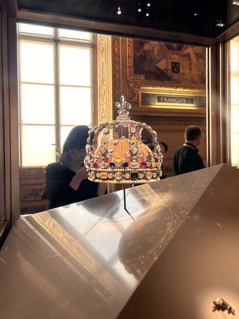 After catching my breath, I ventured onto the crowned jewels exhibit, where I was enchanted by the dancing light of diamonds and sparkles of gold and emerald just mere inches away from my grasp. I wondered whether the Louvre held these objects as their own or if they were on loan, but I remembered that they may have descriptions to determine their origins. And of course, I had to see the Mona Lisa, which was honestly a little bit anti-climatic given the other wondrous and large paintings surrounding the artwork.