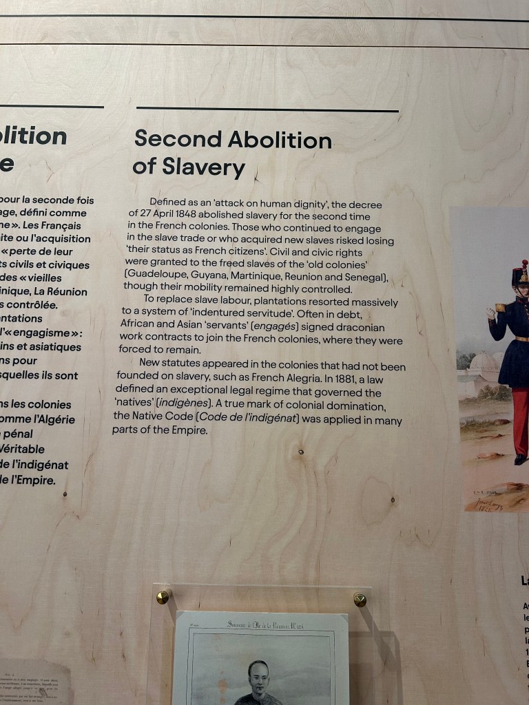 Touring the French immigration museum opened my eyes to a side of French history that I did not know existed. I had no idea that the French abolished slavery in 1794, made it legal again in 1802, then outlawed it again for good in 1848. I had no idea that the French held a Colonial Exposition attempting to justify its presence in the colonies.