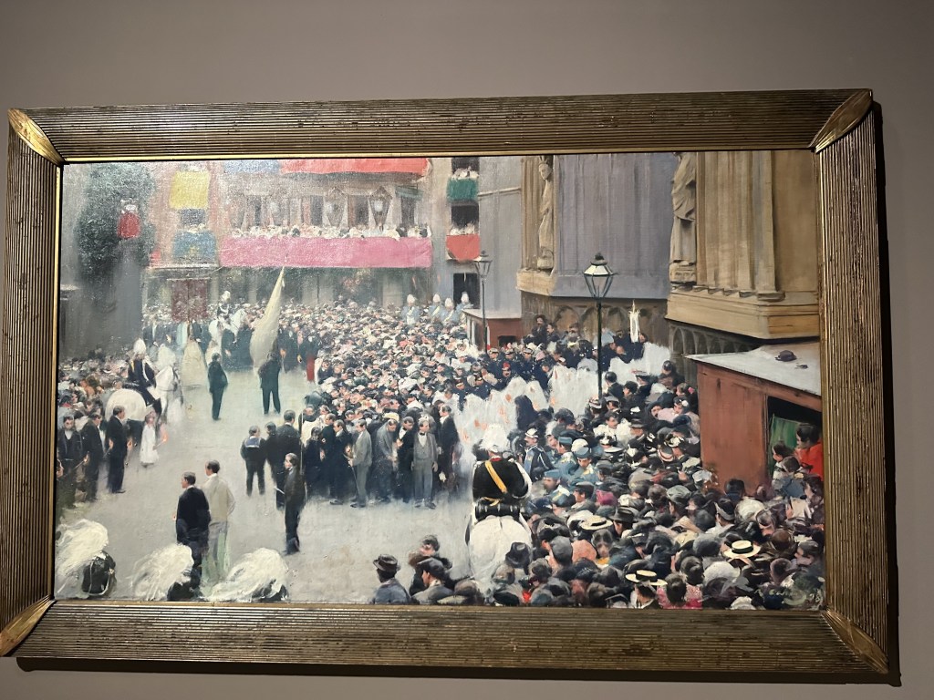 One thing I also noticed is how the art showed class disparities in different time periods. One work from the late 1800s would show women working in a tapestry factory, exhausted, while other paintings from the same year would show higher class women getting ready for the ball. Art is consistently present across classes, and seeing how different people were living in the same time and place contextualizes social movements of Catalonia to make more sense to me.